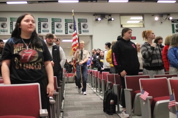 Sophomore Callan Kluever, a Boy Scout, carried the American Flag. He said, “We have been practicing doing the flag since I was in first grade.” Kluever and the other Boy Scouts were honored to be given this opportunity. “I was excited to get to do this for the veterans,” Kluever said.