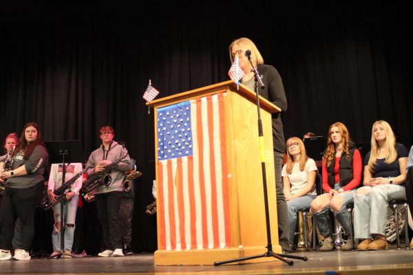 Reid, the guest speaker for the assembly, was a former member of the Army. She served for four years after receiving an ROTC scholarship and graduating from Dartmouth College. She also served as a platoon leader at age 22. Her central point in her speech was to inspire the students. She said,“I was nervous to come and present to the high school.” Reid had, in a previous year, presented at the middle school and had glowing reviews. She said, “I wanted to honor the veterans who were here and thank them for their service.” Her speech used a quote from John F. Kennedy: Ask not what your country, ask what you can do for your country. She applied this to high school kids’ lives. Reid said, “Ask not what your parents can do for you, but what you can do for your parents…Ask not what your teachers can do for you, but what you can do for your teachers…Ask not what your community can do for you, but what you can do for your community.”